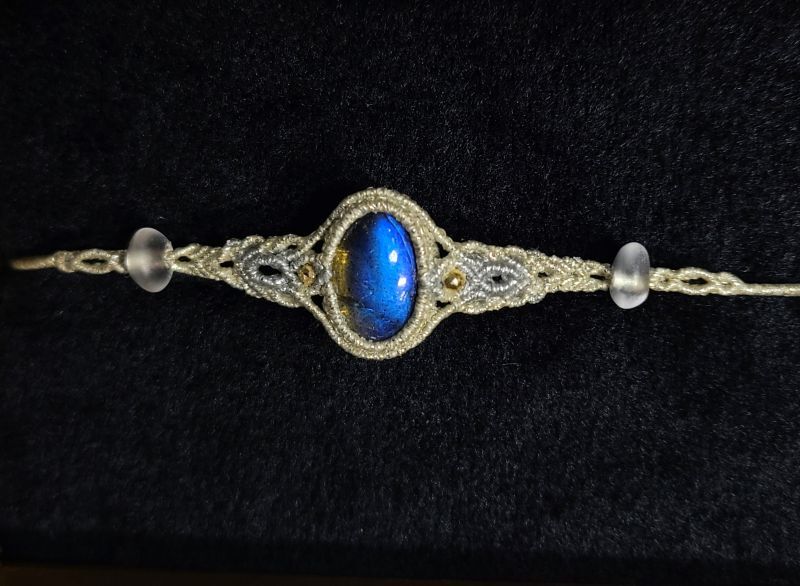 ☆09/09UP☆金と銀の紐でゴージャス。選び抜いた最高品質のディープブルーラブラドライト:9月満月先生作品:星と十五夜の晩餐2 [FK32]