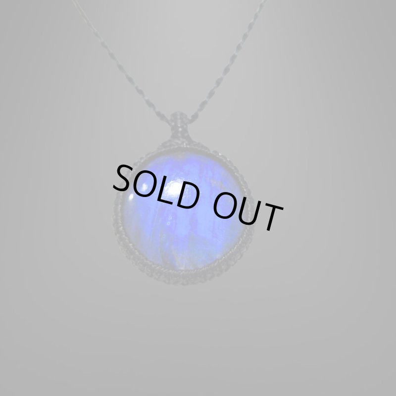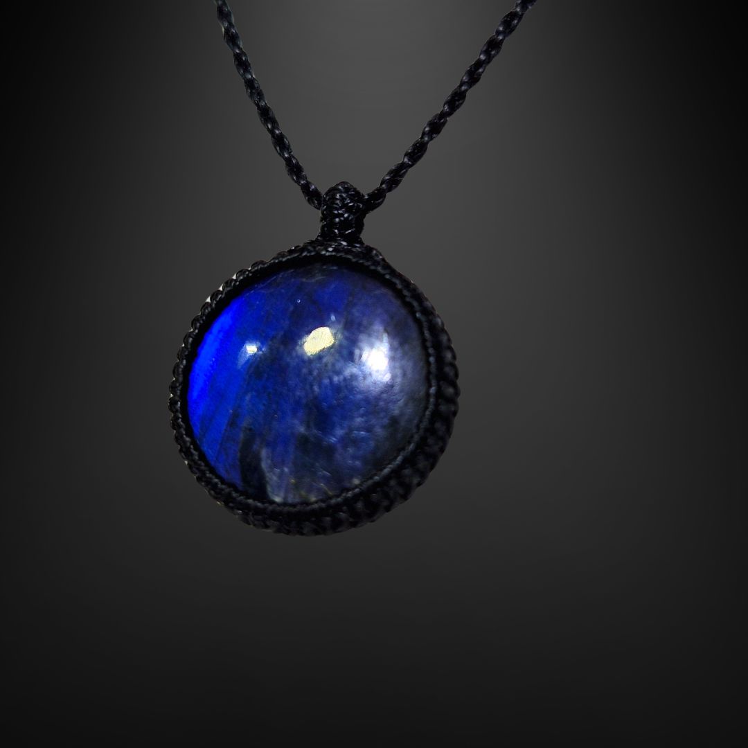 輝くラブラドライトを使用したこの美しいマクラメペンダントは、