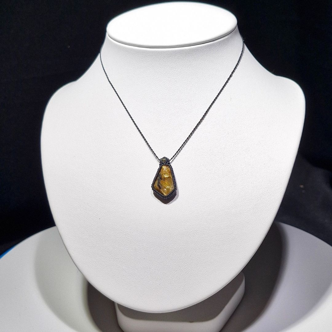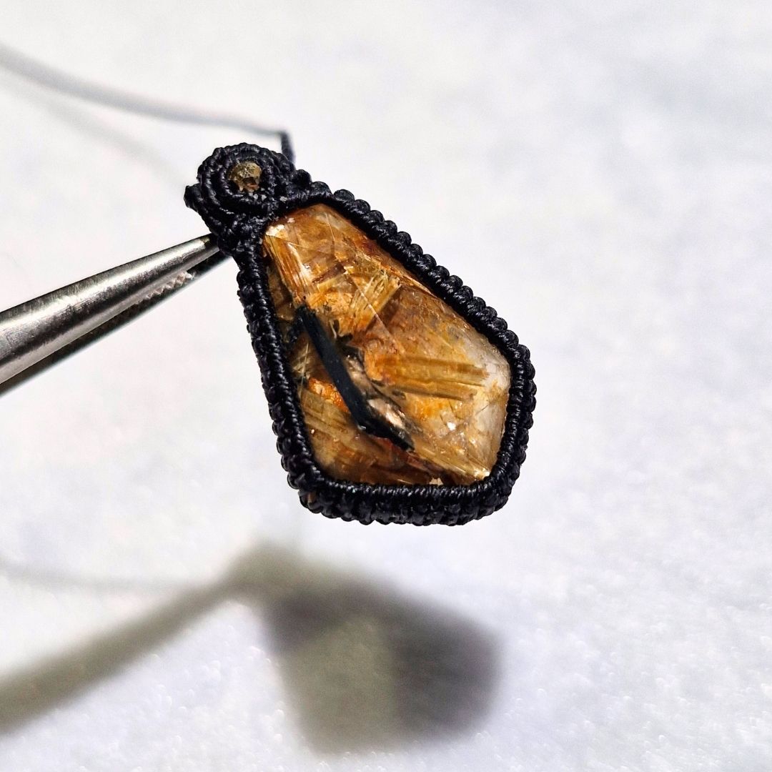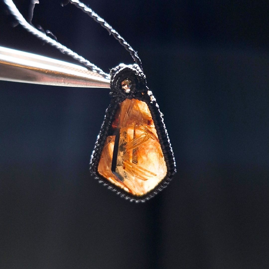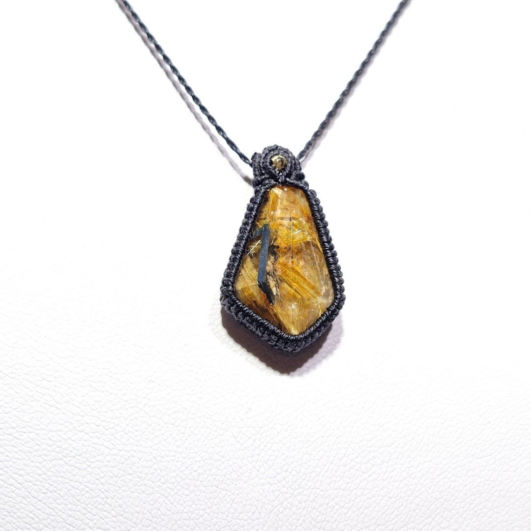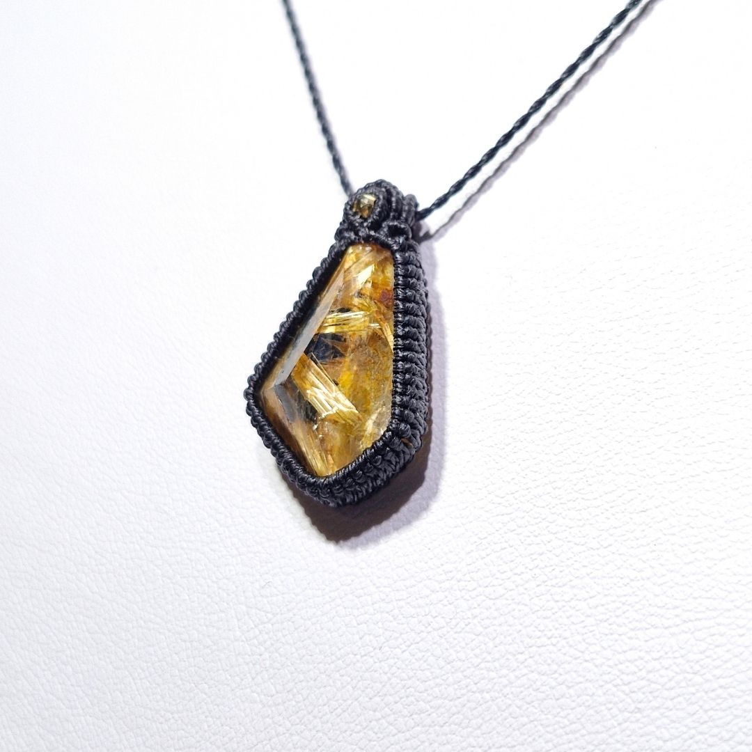 ☆11/05UP☆先生作品マイクロマクラメジュエリー:ブラジル産ゴールドルチルクォーツ!金の針金が水晶の中に:美しい金の結晶:Radiant Path Necklace(レディアントパス・ネックレス) [R7-12-09]